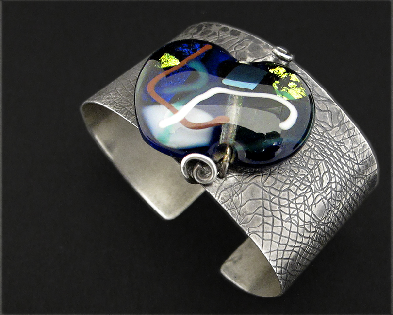 After marrying at age 20 she moved to Pennyslvania and took up Fine Art at Bucks Community College. She loved and thrived there. She started in Painting and Sculpture and moved into metals. Although she completed her Fine Art program in two years she continued to take and audit classes. Her career path took a turn about 12 years ago when she discovered Precious Metal Clay. This medium finally enabled her to combine all her media. Her art now encompass jewelry and sculpture that she is able to incorporate drawing and painting and has even added glass and polymer and resin.