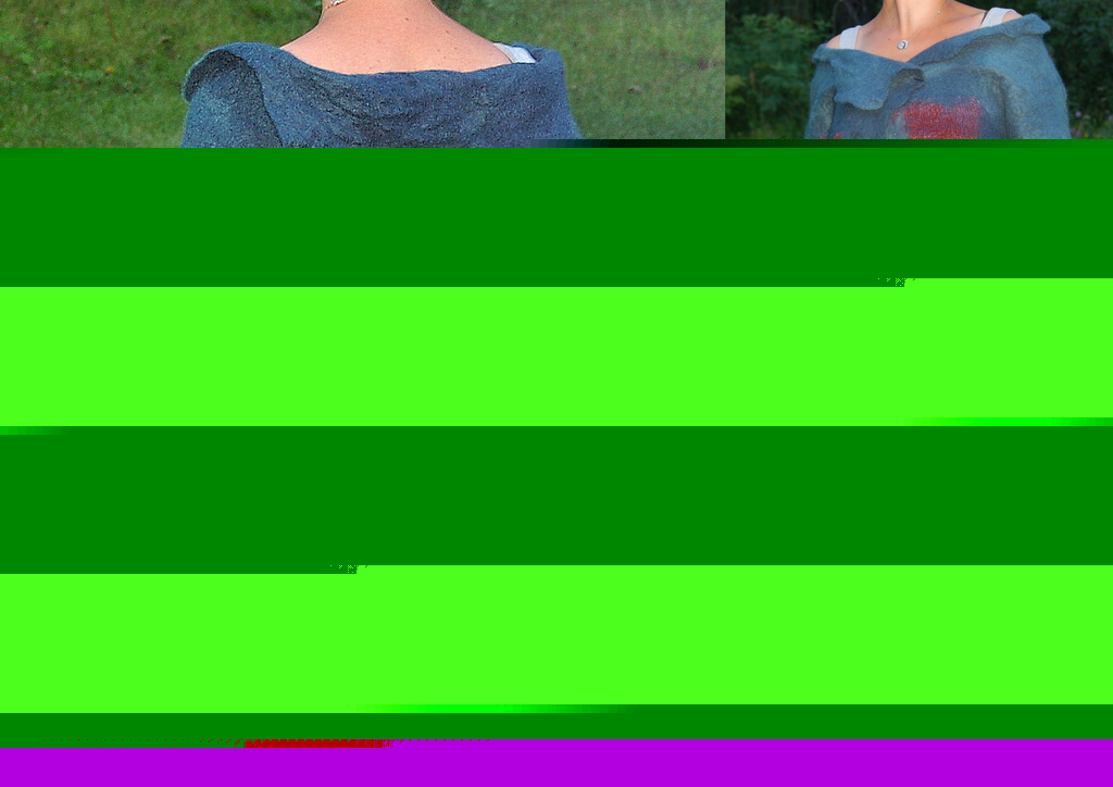 Inger sews clothes from her own designs, knit on her very old and trusty knitting machine (again designing everything herself), felt luxurious scarves and home decor, spin yarn, dye fabric, silk and wool and has even been seen to construct leather boots, which she still wears to this day.
